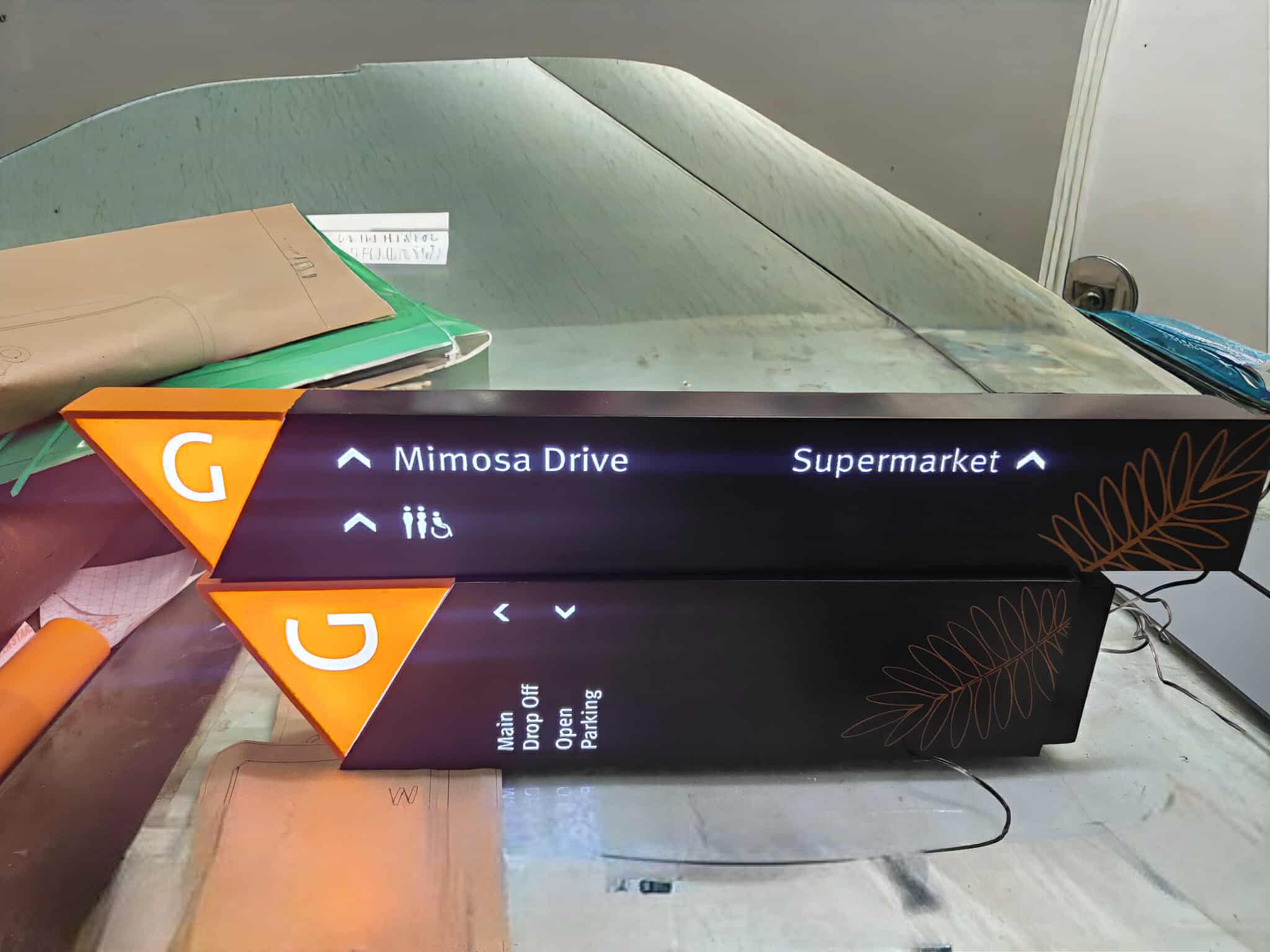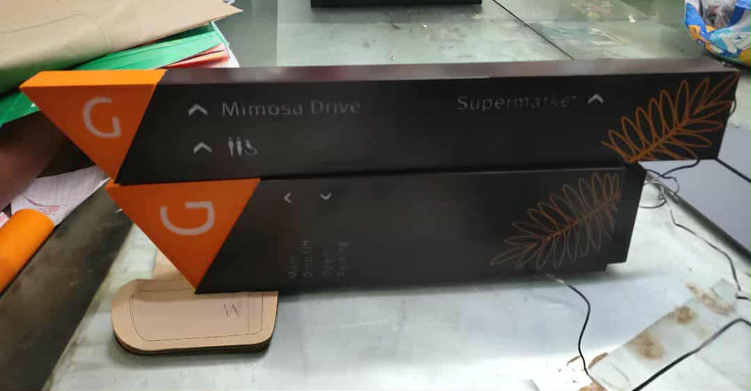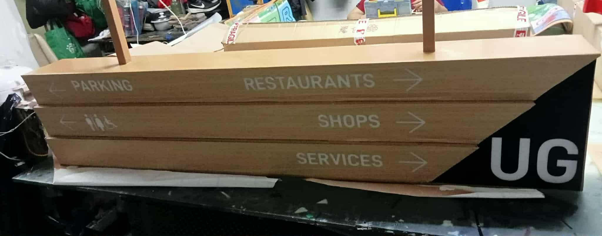 Indoor moss wall installation in Metro Manila; workers using power tools, exposed beams. Sign maker Philippines by M&G Global Ads.Indoor wooden wayfinding directional sign for PARKING, RESTAURANTS, SHOPS, SERVICES by sign maker Philippines by M&G Global Ads.Indoor illuminated acrylic wayfinding signage with UG letters for parking, shops, services, Metro Manila. Sign maker Philippines by M&G Global Ads.GMA illuminated acrylic LED signage with red heart on tall building facade at night, Metro Manila sign maker Philippines by M&G Global Ads.SM Appliance Center acrylic building signage under construction in Metro Manila by sign maker Philippines, M&G Global Ads.Acrylic indoor signage with white SM letters on blue, glass wall mounted at a new store in Philippines by sign maker Philippines, M&G Global Ads.Two illuminated black and orange directional signs with the letter “G.” The top sign points to Mimosa Drive and Supermarket, while the bottom sign has some unreadable text and a list with drop off, open, and parking.A tall, black directional sign with an orange triangular top labeled G. Below are illuminated white arrows and text reading Main Drop Off and Open Parking. Decorative leaf designs are at the bottom.Two black arrow-shaped directional signs with orange accents and leaf designs, mounted on a stand. The top sign points to Mimosa Drive and Supermarket; the bottom sign’s text is partially unreadable.Acrylic evacuation map signage for LG floor, indoor building lobby, Metro Manila. Sign maker Philippines by M&G Global Ads.Office and restroom signage for corporate use, shown on table in Makati, by M&G Global Ads.Billboard signage for Filinvest Malls CUBAO on construction site, Quezon City, by M&G Global Ads.Custom gold metal restaurant door signs for WESTSIDE GRILL in Makati by M&G Global Ads, shown on a wooden surface.Modern outdoor signage for M RESIDENCES with gold geometric logo in Makati landscaping by M&G Global Ads.Exterior building signage for M Residences in Mandaluyong with brass logo and plants by M&G Global Ads.Large building banner signage for FILINVEST Malls at Cubao, Quezon City, with street view and rail, by M&G Global Ads.COPETON BAY SUITES hotel signage with English and Chinese text in Aseana, Pasay City, building under construction by M&G Global Ads.Hotel building signage installation for Copelton baysuites in Aseana Pasay by M&G Global Ads. Worker on high-rise with harness and helmet.Etched glass office signage for AboitizPower in a modern meeting room, Mandaluyong location by M&G Global Ads.Frosted glass office signage with partial text, white chairs, wooden desks in Makati meeting room. By M&G Global Ads.Office glass etching signage for AboitizPower in Makati, with desks, white chairs, and fire extinguisher by M&G Global Ads.Copeton Baysuites building signage with Chinese characters in Aseana Pasay. Modern mid-rise under construction by M&G Global Ads.MAYNILAD Cavite Satellite Depot outdoor signage with logo, client Maynilad, Ortigas location by M&G Global Ads.Neon Love Ribs signage and menu board at restaurant interior in BGC with M&G Global Ads branding, plants, tables, diners.Bebang Halo-Halo gold acrylic signage on green wall in Quezon City, featuring crowned B logo above text by M&G Global Ads.AboitizPower outdoor signage in Makati with blue logo, greenery, and fire extinguisher by M&G Global Ads.