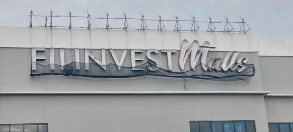 ILINVEST Malls outdoor building signage in acrylic and red script, Metro Manila, sign maker Philippines by M&G Global Ads.BILLINVEST Mall building signage, likely acrylic or outdoor type, on facade in Metro Manila by sign maker Philippines M&G Global Ads.BLINVEST Mall building acrylic signage under construction in Metro Manila, sign maker Philippines by M&G Global Ads.Building under construction with outdoor acrylic FILINVEST Malls signage, Metro Manila. Sign maker Philippines by M&G Global Ads.