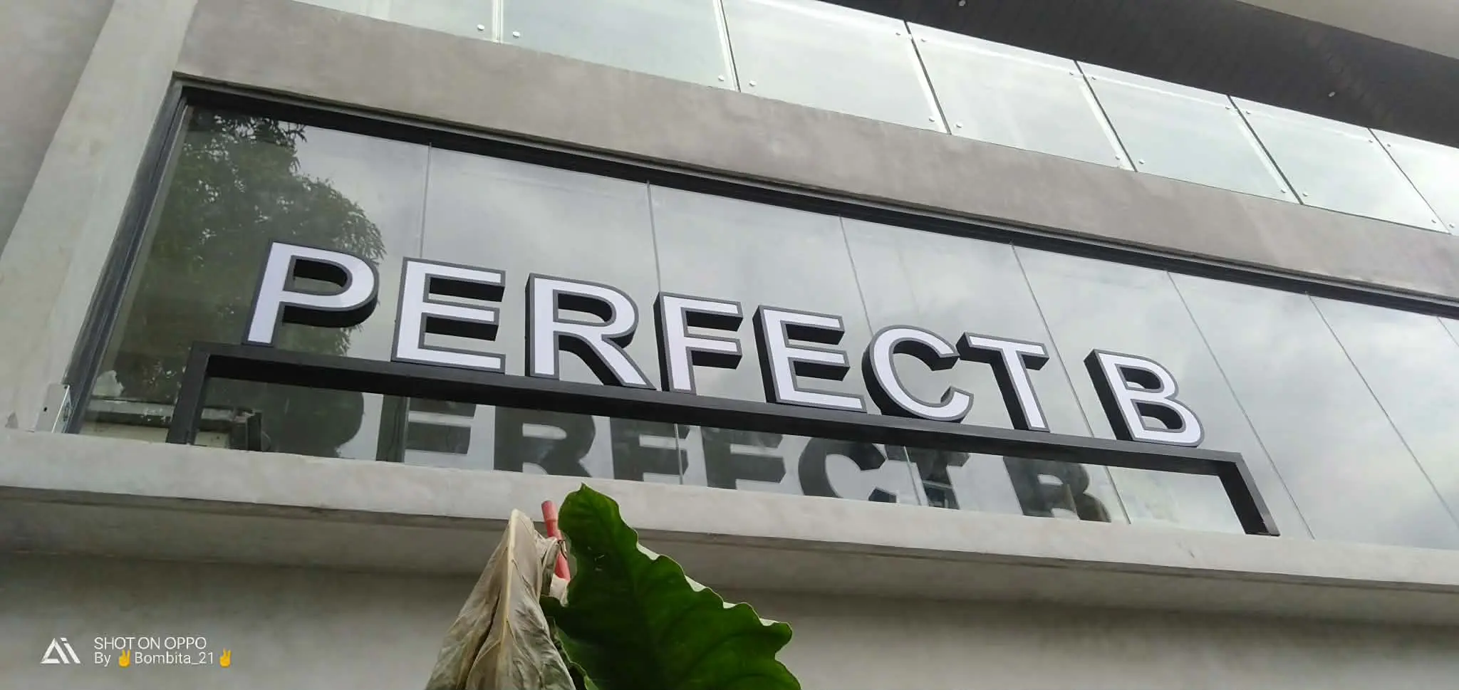 Acrylic building signage “PERFECT B” on glass and concrete exterior in Metro Manila, sign maker Philippines by M&G Global Ads.