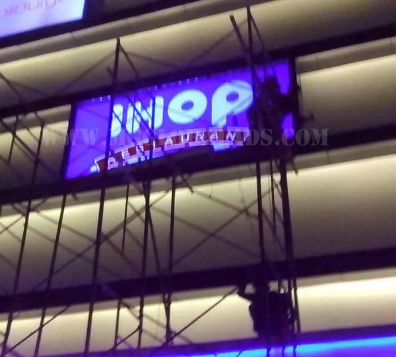 Filinvest Malls large illuminated signage installation in Quezon City, date 12-20-2016 in pink, by M&G Global Ads.