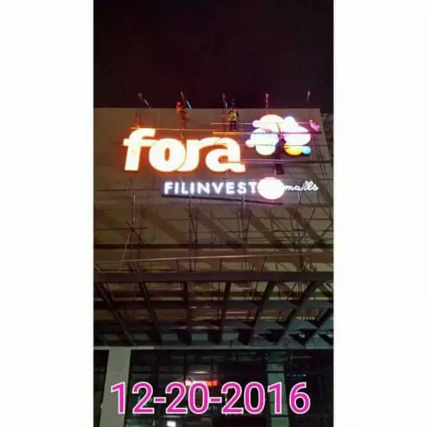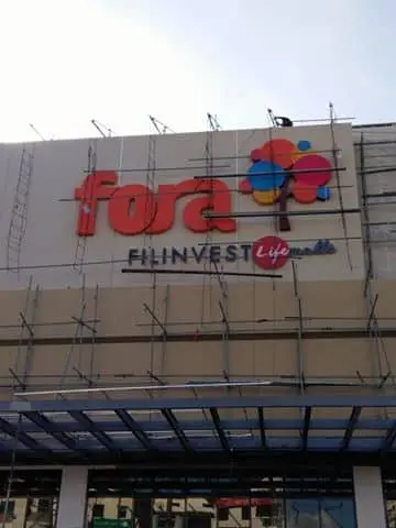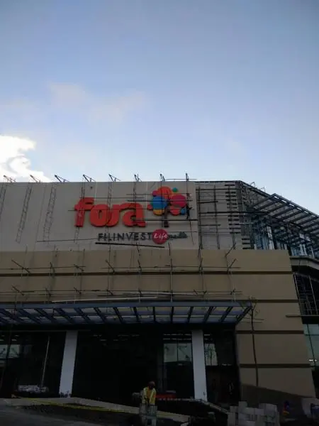 Fora Filinvest Life Mall outdoor signage with colorful logo and scaffolding, in Ortigas location, by M&G Global Ads.