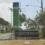 Greenfield pylon signage for Greenfield client in Ortigas, featuring clock tower under construction by M&G Global Ads.