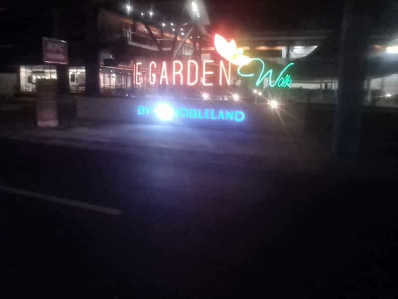 Neon outdoor restaurant signage for GARDEN Wok BY NOBLELAND with leaf design, Makati location, by M&G Global Ads.