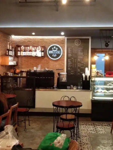 Neon sign 1905 Studio Café for coffee shop in Makati, cozy tables, pastries, brick wall décor by M&G Global Ads.