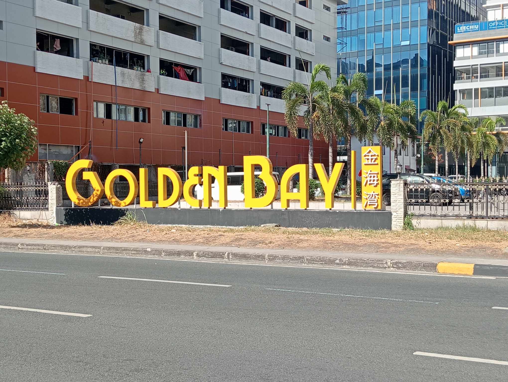 Golden Bay outdoor acrylic signage with yellow letters and Chinese characters, Metro Manila, sign maker Philippines by M&G Global Ads.