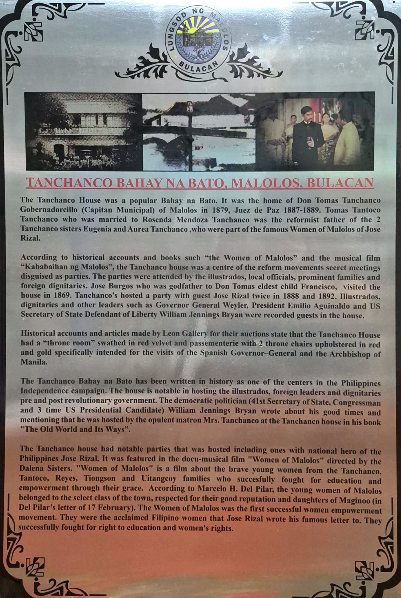 Acrylic historical information signage with decorative border, Malolos Bulacan, sign maker Philippines by M&G Global Ads.