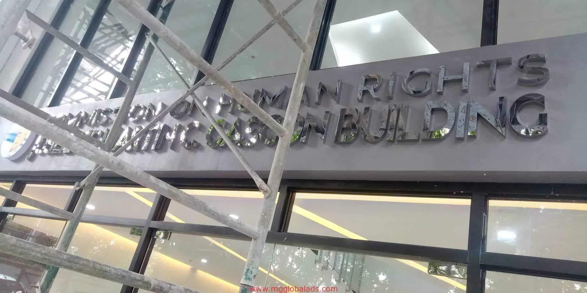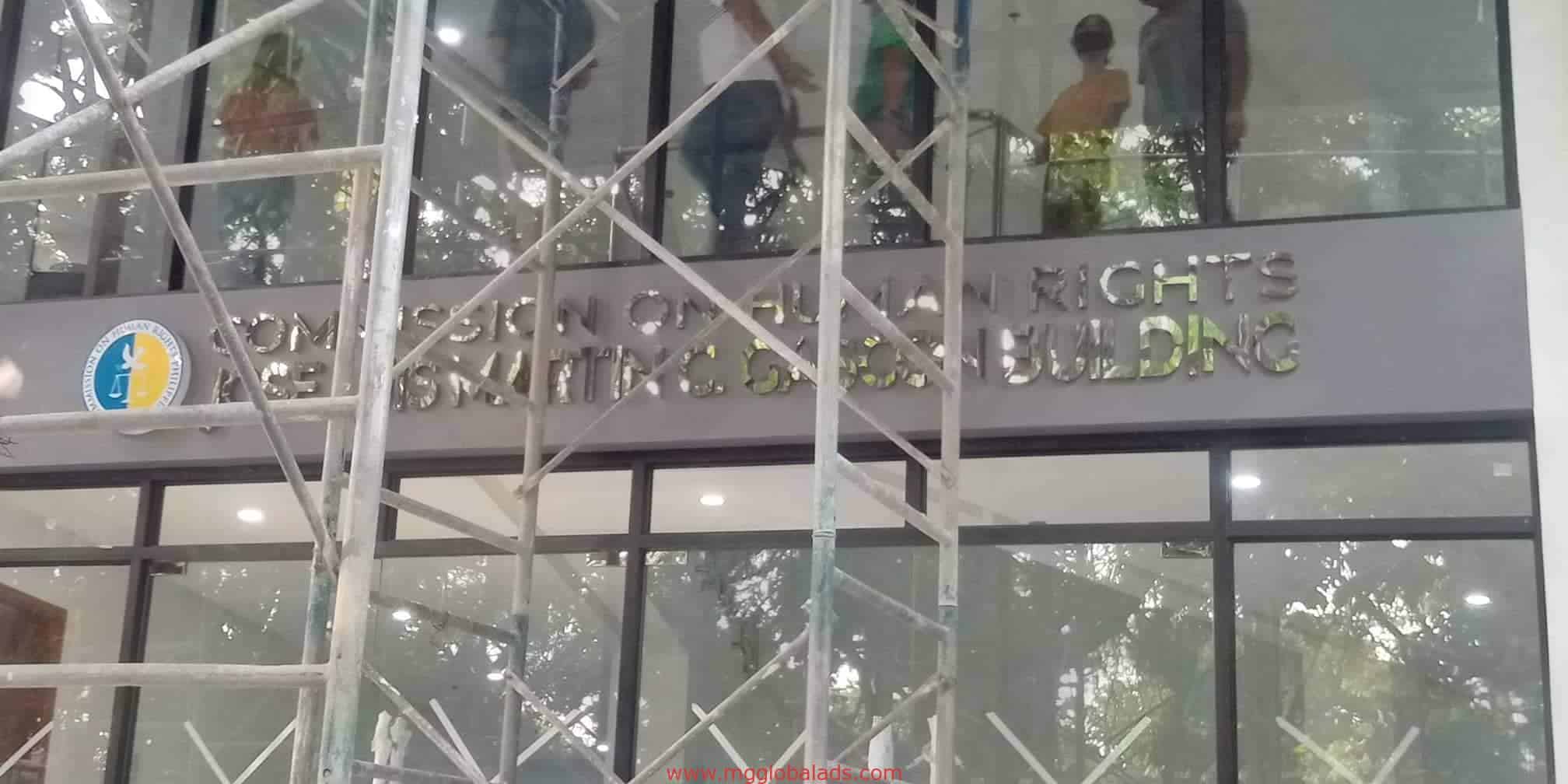 Building signage for Commission on Human Rights – Rights Training Center in Mandaluyong with scaffolding by M&G Global Ads.