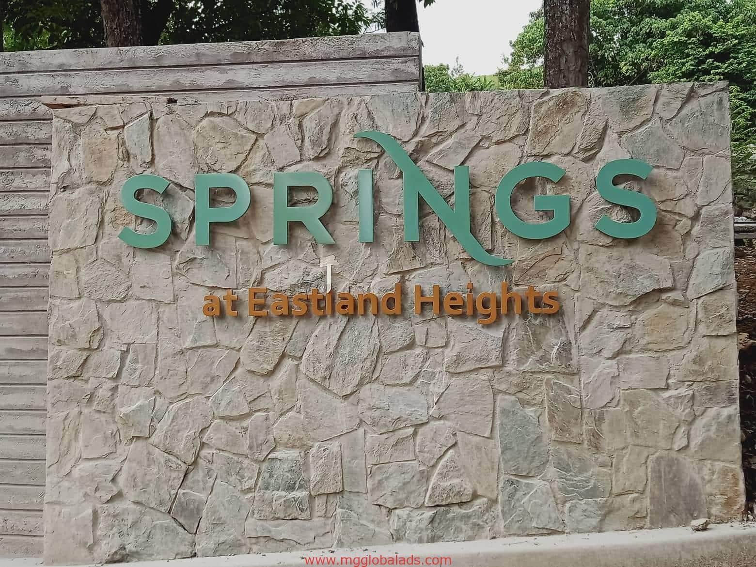 Green LED wall signage for Eastland Heights with SPRINGS logo, Quezon City location, by M&G Global Ads.