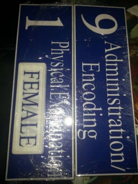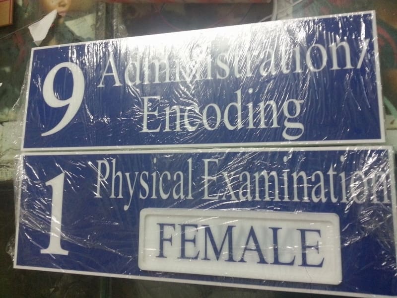 Indoor acrylic room signs for Administration/Encoding and Physical Examination FEMALE, Metro Manila, sign maker Philippines by M&G Global Ads.