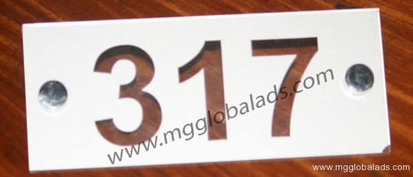 Acrylic room number signage 317, white cut-out on wood, for Metro Manila, sign maker Philippines by M&G Global Ads.
