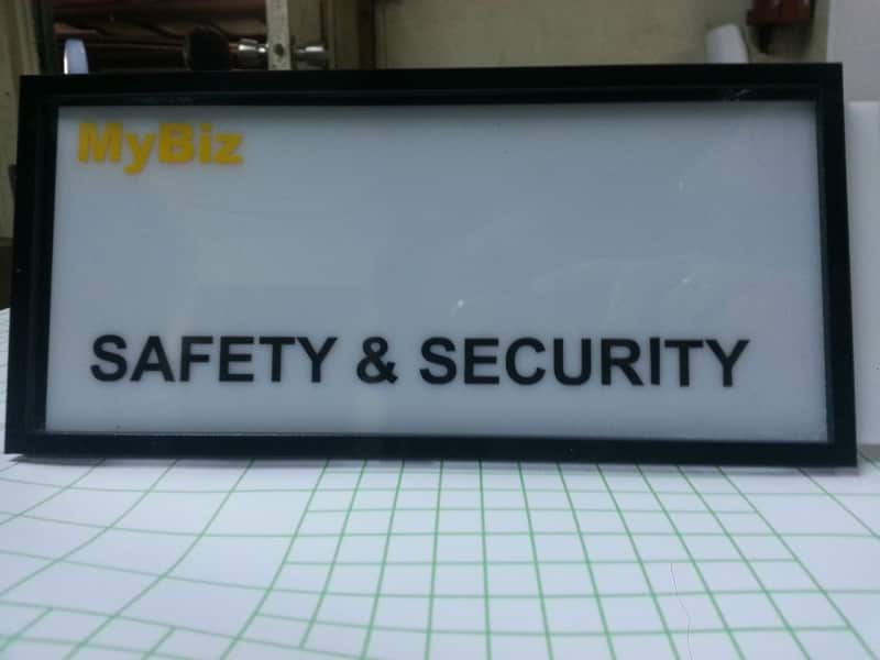Acrylic safety sign for MyBiz, black border, Metro Manila. Sign maker Philippines by M&G Global Ads.