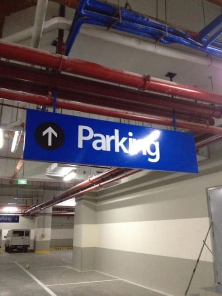 Outdoor parking wayfinding signs, building signage, Metro Manila, sign maker Philippines by M&G Global Ads.