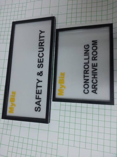 Indoor acrylic room signage with black frames for MyBiz, Metro Manila, sign maker Philippines by M&G Global Ads.