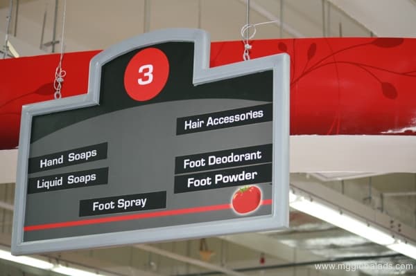 Indoor acrylic supermarket aisle sign labeled “3” in Metro Manila; custom sign maker Philippines by M&G Global Ads.