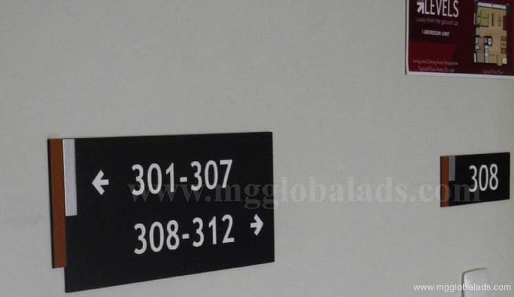 Room number plaques in assorted styles, acrylic and aluminum signage, Metro Manila sign maker Philippines by M&G Global Ads.