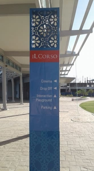 Outdoor aluminum wayfinding signpost at IL Corso Cebu, directions for Cinema and Parking. Sign maker Philippines by M&G Global Ads.