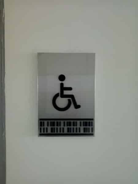 Stainless steel wheelchair accessibility room sign on white wall, Metro Manila, sign maker Philippines by M&G Global Ads.