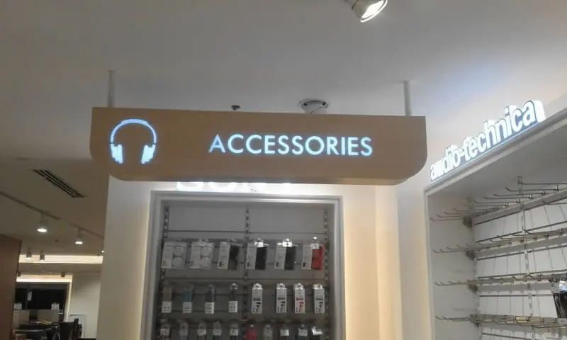 Indoor LED ACCESSORIES acrylic sign with headphone icon and illuminated audio-technica sign, Metro Manila, sign maker Philippines by M&G Global Ads.