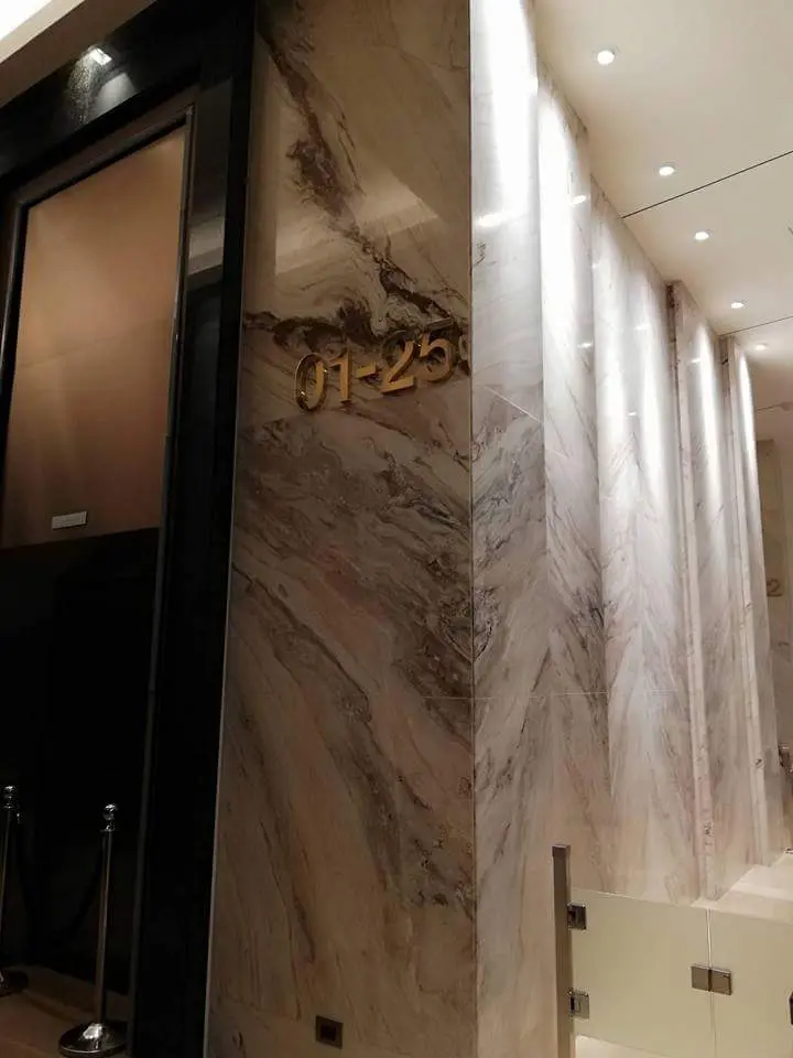 Indoor stainless steel room number signage 01-25 in modern marble hallway, Metro Manila, sign maker Philippines by M&G Global Ads.