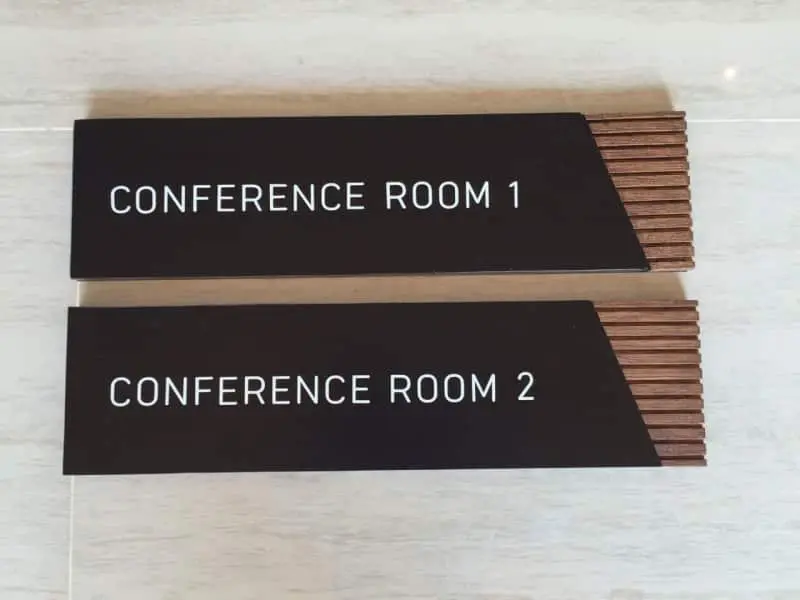 Indoor room acrylic signage for CONFERENCE ROOM 1 and 2 with wood accent, Metro Manila, sign maker Philippines by M&G Global Ads.
