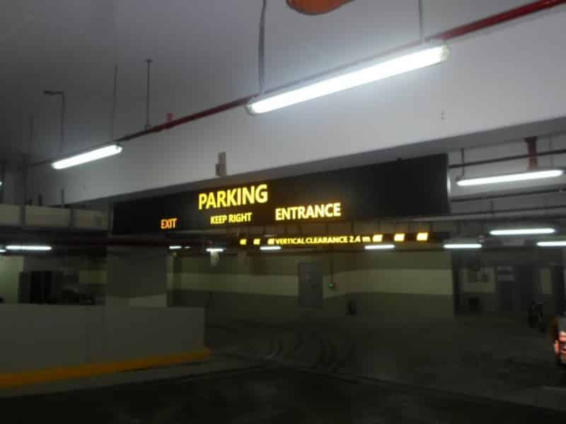Acrylic indoor parking and wayfinding signage with yellow text at garage entrance, Metro Manila, sign maker Philippines by M&G Global Ads.