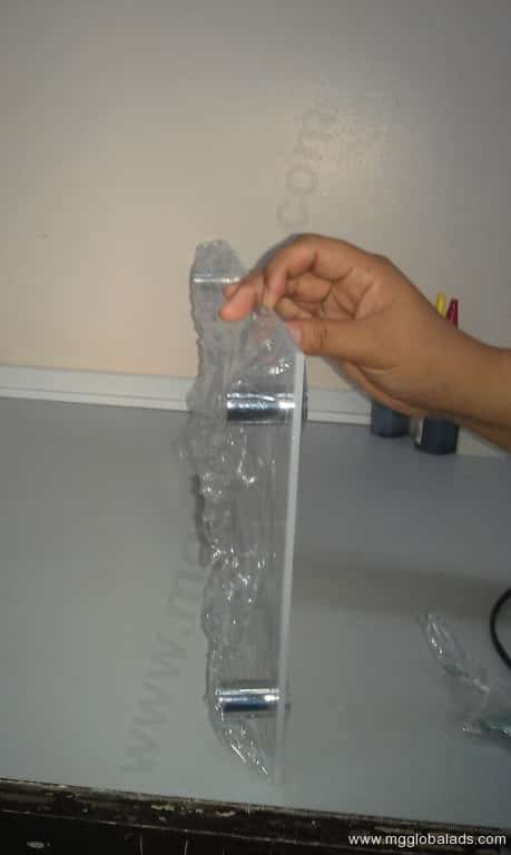 Acrylic signage material with metal hinges, transparent sheet, Metro Manila, sign maker Philippines by M&G Global Ads.