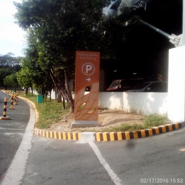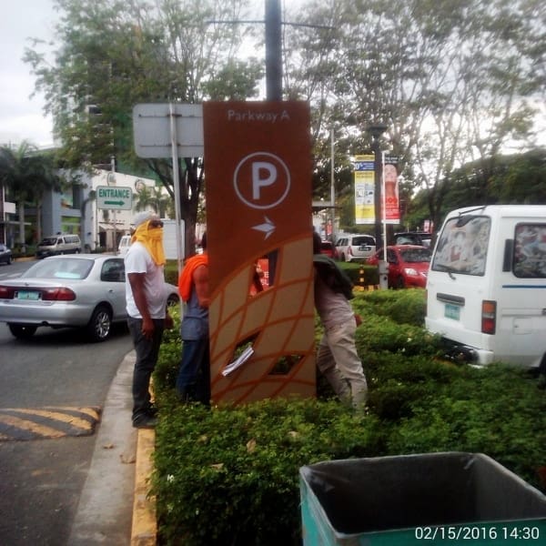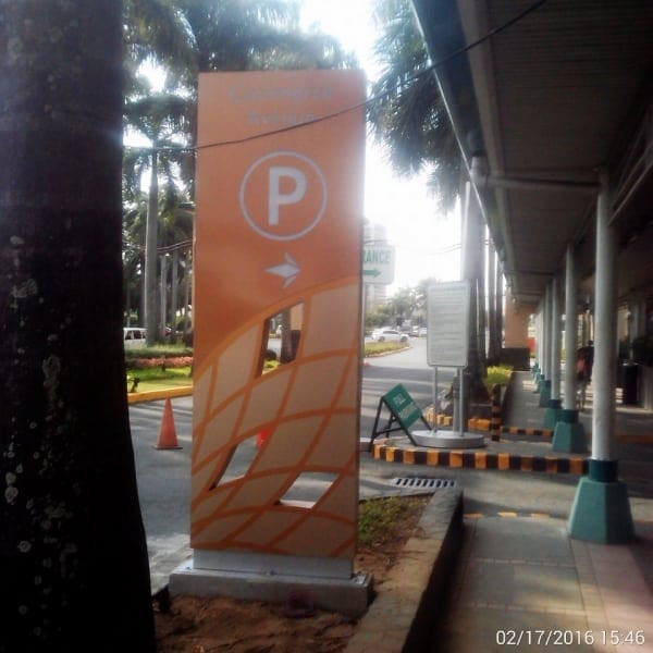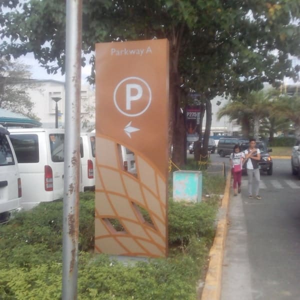 Outdoor pylon parking sign, Parkway A, brown finish, Metro Manila. Sign maker Philippines by M&G Global Ads.