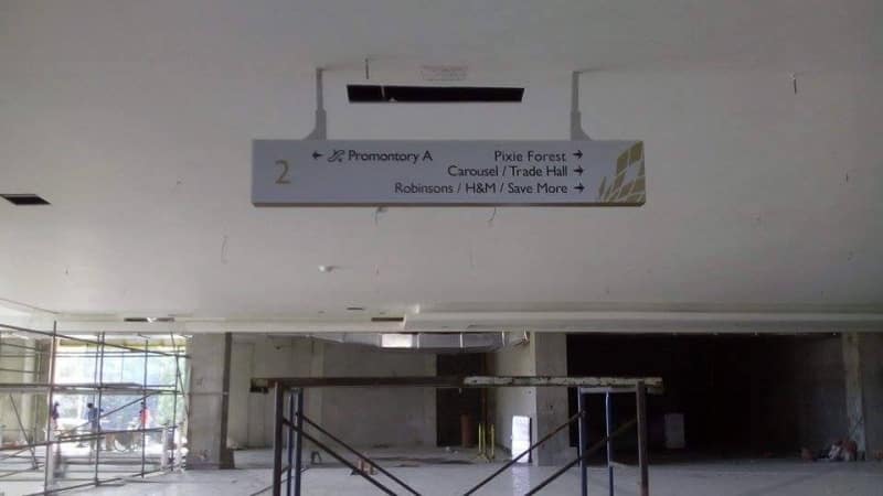 Indoor wayfinding acrylic signage in mall, Metro Manila; directional sign by sign maker Philippines by M&G Global Ads.