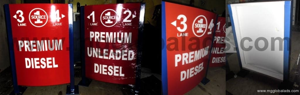 LED fuel price display boards, indoor signage, red with white text, Metro Manila sign maker Philippines by M&G Global Ads.