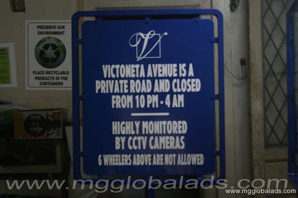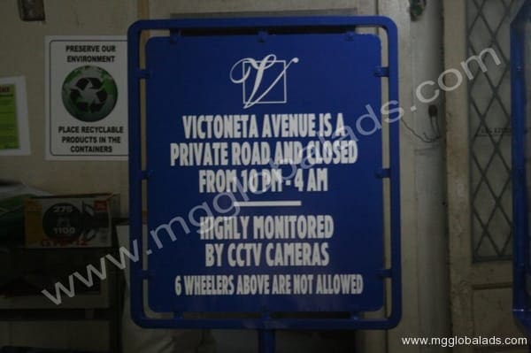 Outdoor acrylic road signage Victoneta Avenue, Metro Manila, sign maker Philippines. Environmental sign visible. By M&G Global Ads.