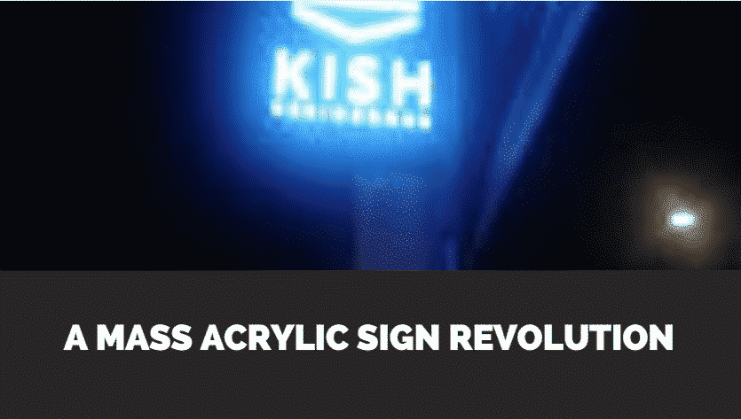 Glowing blue acrylic indoor sign for KISH in Mandaluyong, bold tagline, premium signage by M&G Global Ads.