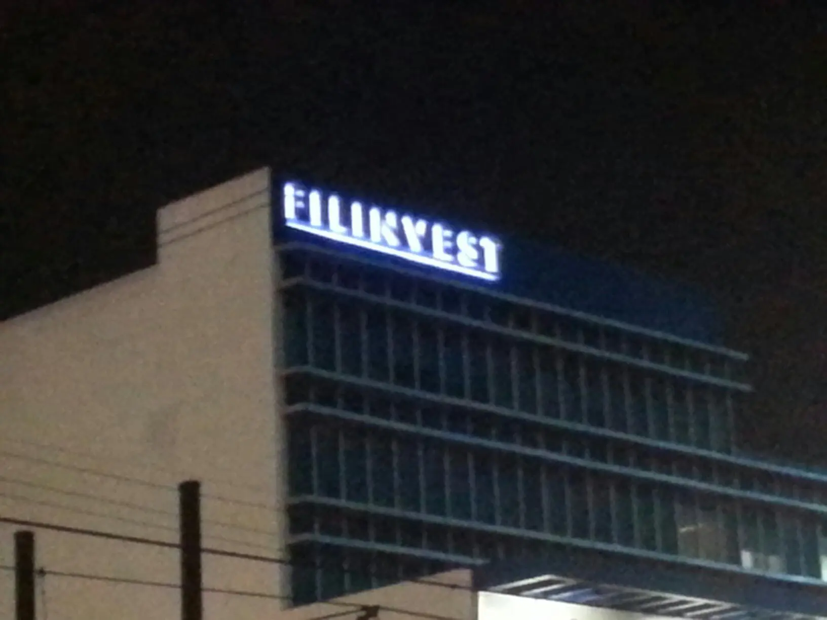 Outdoor LED rooftop signage for FILINVEST on a modern building in Ortigas, with blue window frames, by M&G Global Ads.