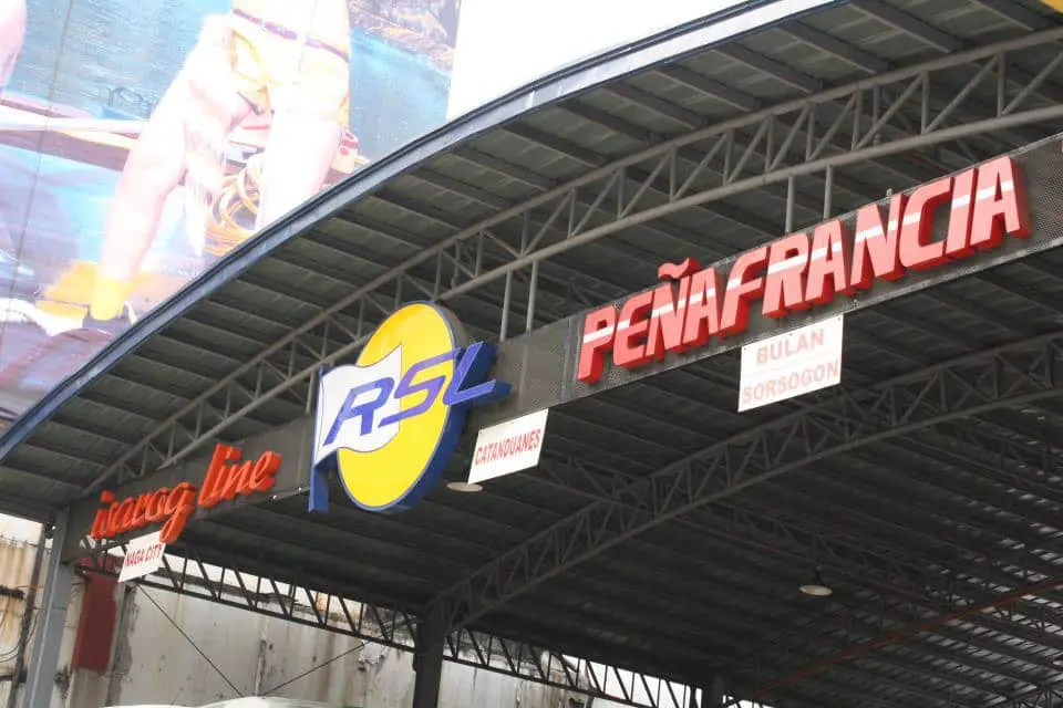 Terminal building signage and red and white Peñafrancia RSL signs Cubao, Naga by M&G Global Ads, Quezon City.