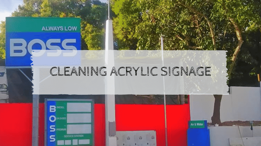 Acrylic outdoor signage for ALWAYS LOW BOSS at a fuel station in Makati, trees in background. By M&G Global Ads.