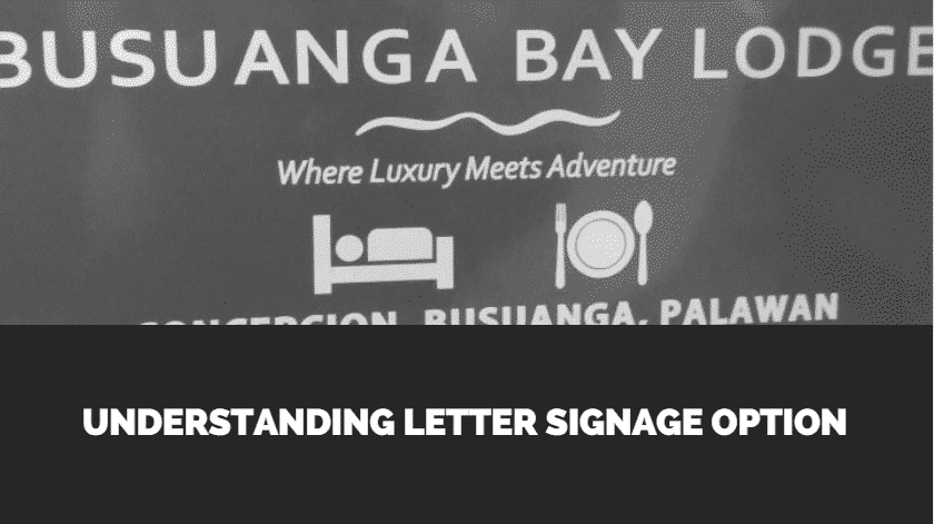 Letter signage for BUSUANGA BAY LODGE client in Makati, sleek metallic sign details by M&G Global Ads.