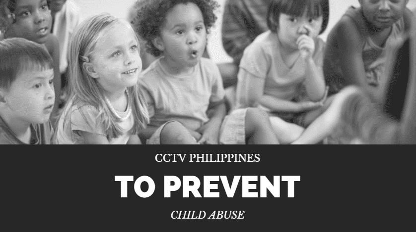 Metallic CCTV signage for Philippines client, anti-child abuse message in Makati, black and white image by M&G Global Ads.