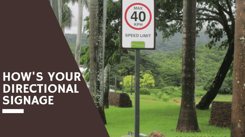 Metal speed limit sign (MAX 40 KPH) with directional signage ad in grassy area, Mandaluyong. Road signage by M&G Global Ads.