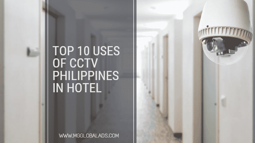 Hotel hallway with indoor signage and CCTV camera in Makati, featuring Top 10 uses text, by M&G Global Ads.