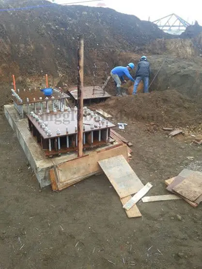 Acrylic signage installation for a client in Makati by M&G Global Ads, with workers at a construction site near concrete foundation.