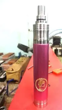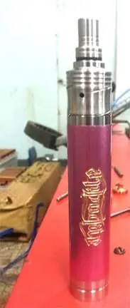Vape shop signage for client in Makati featuring a metallic pink and silver vape pen, workshop background by M&G Global Ads.