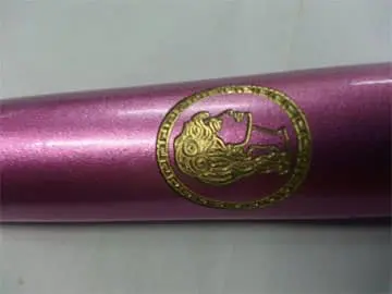 Metallic pink cylindrical sign with gold woman’s profile logo emblem in Makati by M&G Global Ads.