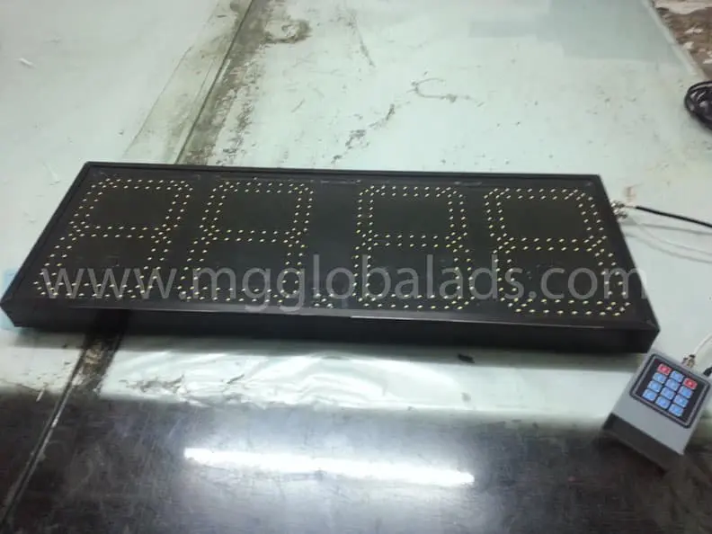 LED display signage panel with control keypad for business in Makati, showing www.mgglobalads.com by M&G Global Ads.