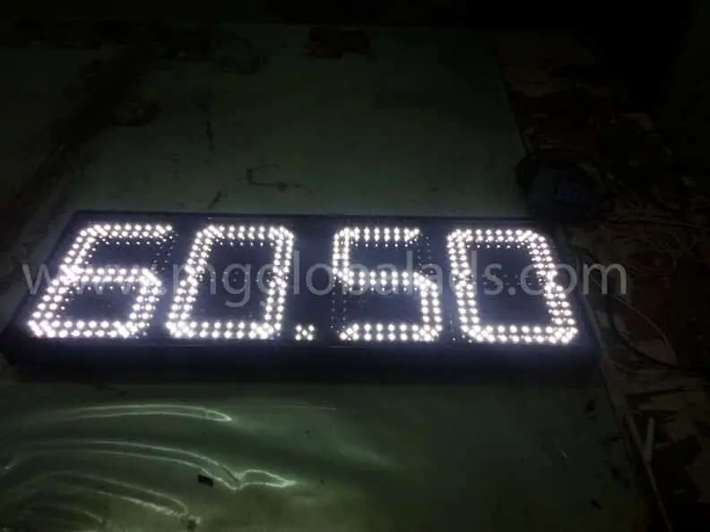 Rectangular LED pylon signage displays 60.50 in white lights, with wires visible, in Mandaluyong by M&G Global Ads.