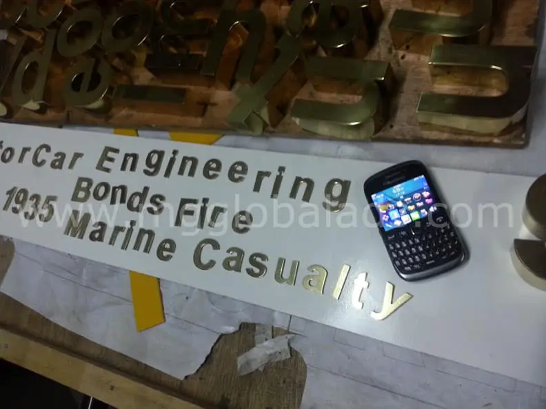 Gold raised letter outdoor office signage for Car Engineering in Makati, with phone and loose letters, by M&G Global Ads.