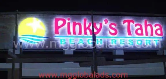 LED signage for Pinkys Taha Beach Resort, sun-wave-star logo, Quezon City location, by M&G Global Ads.