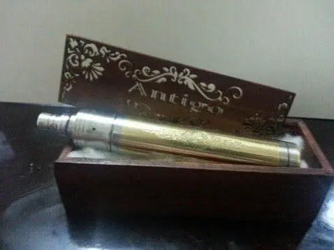 Acrylic signage for Antigo with gold vape pen and ornate box, luxury branding in Makati by M&G Global Ads.