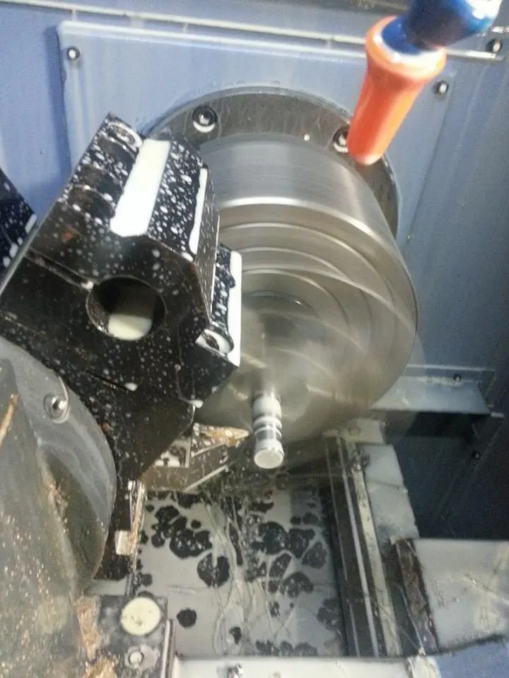 CNC milling machine shaping metal for custom building signage in Makati, showing workpiece and cutter by M&G Global Ads.