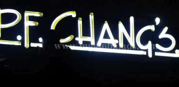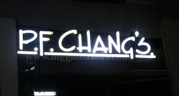 LED restaurant signage for P.F. Changs at BGC in white neon letters on a dark background by M&G Global Ads.