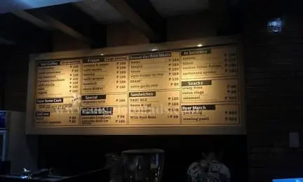 Sleek café menu board building signage in Makati displays coffee, meals, snacks, and prices in pesos by M&G Global Ads.