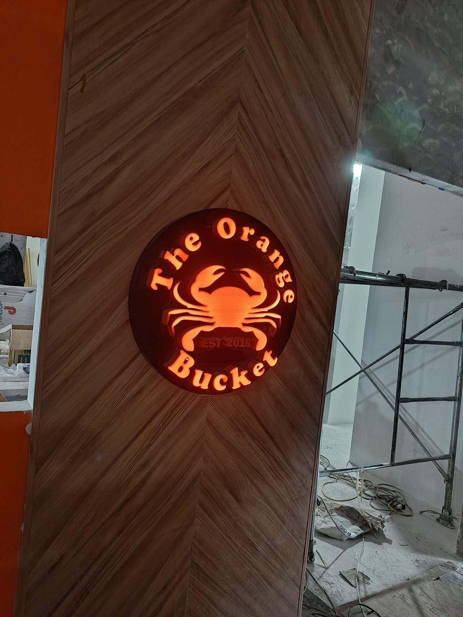The Orange Bucket illuminated exterior signage